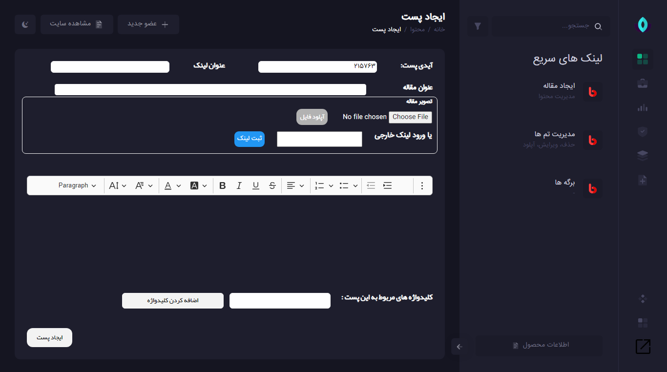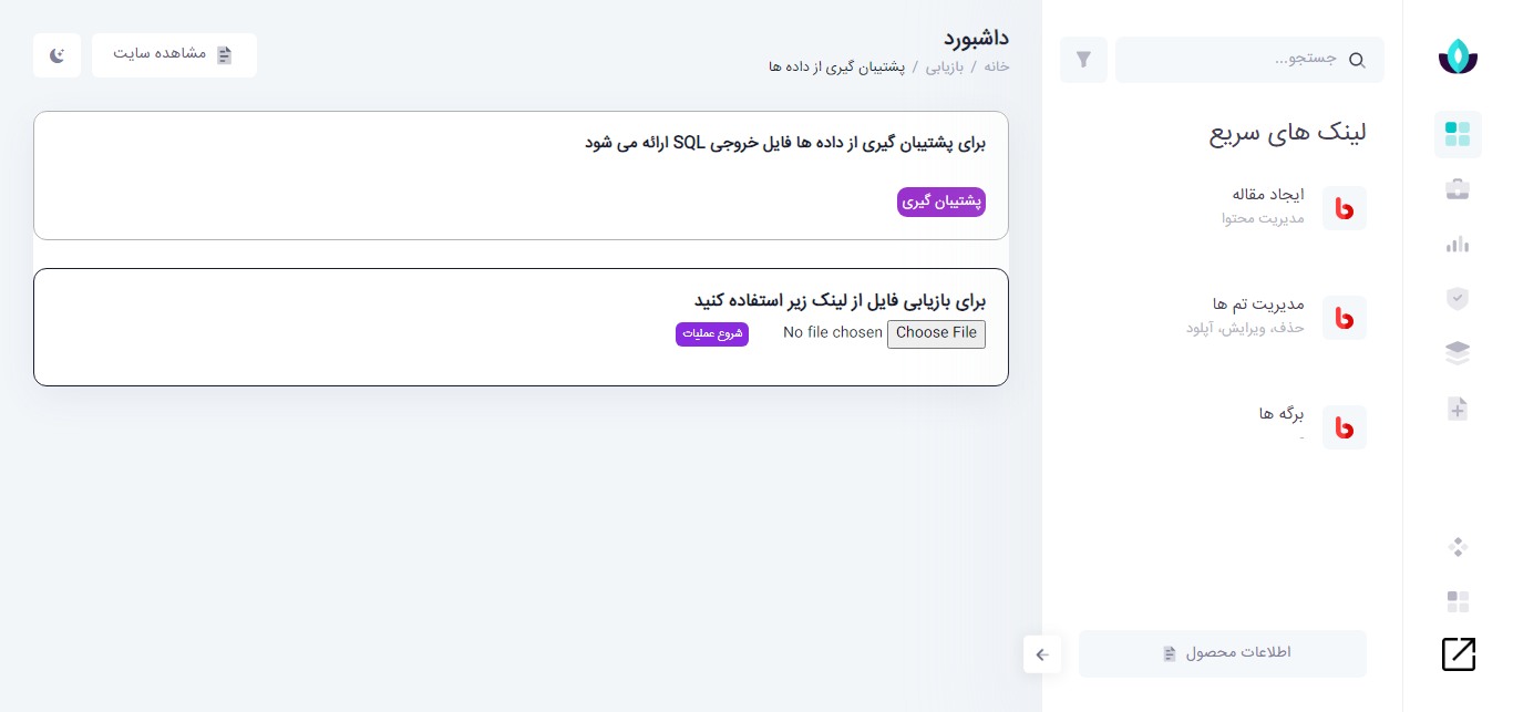 چیدمان و طراحی این سیستم مدیریت محتوا به گونه ای بوده که آسان ترین دسترسی را به امکانات پرکاربرد این نرم افزار ارائه می دهد